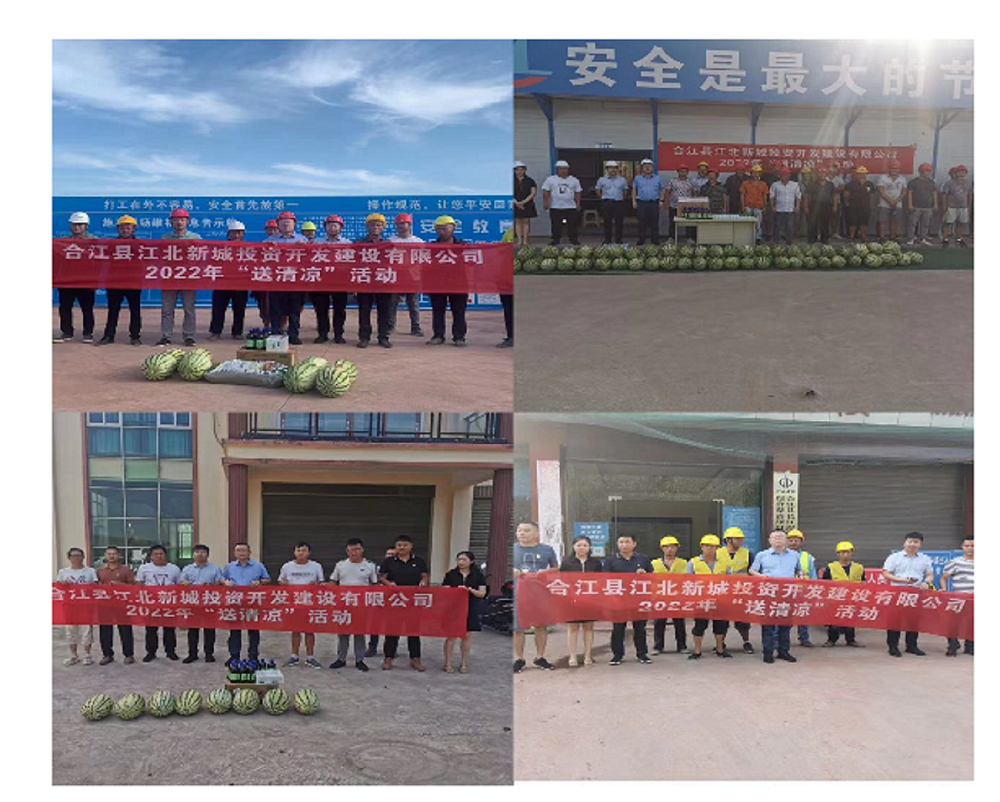 為了切實保障堅守在一線崗位的員工所需, 防止炎熱夏 日高溫中暑, 確保一線工作人員擁有良好的工作狀態(tài), 8 月 8 日 , 江北公司組織開展走一線 “ 送 清 涼 ” 活動 , 為奮戰(zhàn)在生產(chǎn)一線的員工發(fā)放防暑降溫用品。 此次送清涼活動, 分別走訪了學府家園(一期) 、合江縣江北文化綜合體建設項目 (中學及配套道路) 、合江縣長江岸線江北段水環(huán)境綜合整 治項目 (一期) 三標段等一線崗位, 將防暑降溫物品親自送到各個崗位的員工手上, 讓他們切實感受到江北公司的 “清 涼和關愛”。 在發(fā)放慰問品的同時, 也再三叮囑一線人員要 注意防暑降溫, 合理避開高溫作業(yè)時間, 做好防暑應急措施。