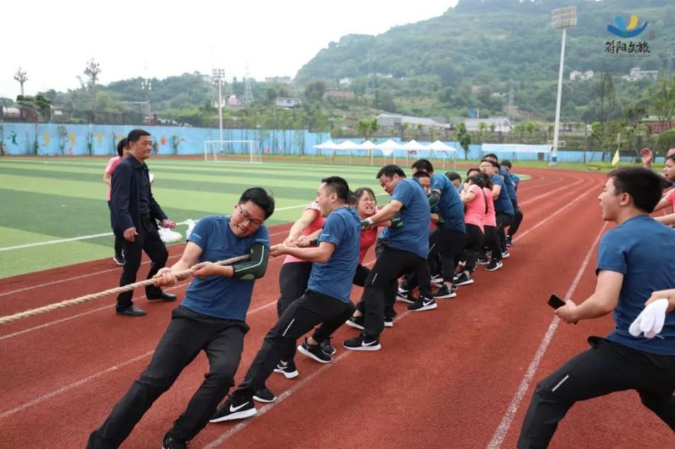 隨著哨聲一響,我們雙手握緊長繩,咬緊牙關(guān)向后拉,為了把握節(jié)奏形成合力,心里默念著“一二、一二”,場上一時僵持難下,但難敵強悍對手,第一局廣源達勝。這仿佛符合多數(shù)人的預期,但我們怎會被拘于這固定印象,越戰(zhàn)越勇才是符陽文旅人的風姿。第二場對決比第一場更加艱難,一開場廣源達占據(jù)絕對優(yōu)勢,我們險被拉到了終線,全憑一口氣死撐,牙關(guān)咬緊,身體后傾,不斷降低重心,腳步穩(wěn)扎,做著別人眼里無畏的掙扎。一定不能越線!在超高壓下堅持了十余秒,那一刻拼的就是韌勁!一群瘦弱的文旅人憑著一股拼勁慢慢把賽場主動權(quán)掌握在了自己手中,每向后移動一步,心里的勁更足了,如荒漠迷路的旅者遇見了綠洲,我們也尋得了力量之源。當現(xiàn)場歡呼聲響起時,我們已癱坐一片,不敢置信,我們贏啦!