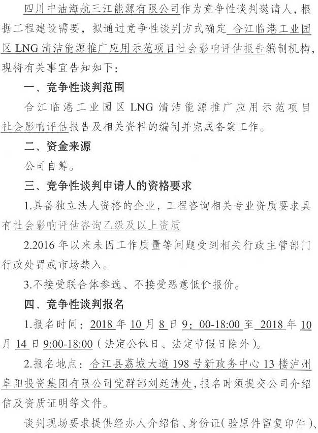 合江臨港工業(yè)園區(qū)LNG清潔能源推廣應用示范項目社會影響評估單位競爭性談判公告.docx