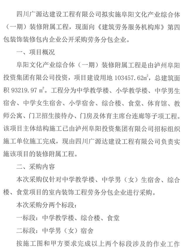 阜陽文化產(chǎn)業(yè)綜合體(一期)裝修附屬工程勞務(wù)分包企業(yè)采購公告.docx