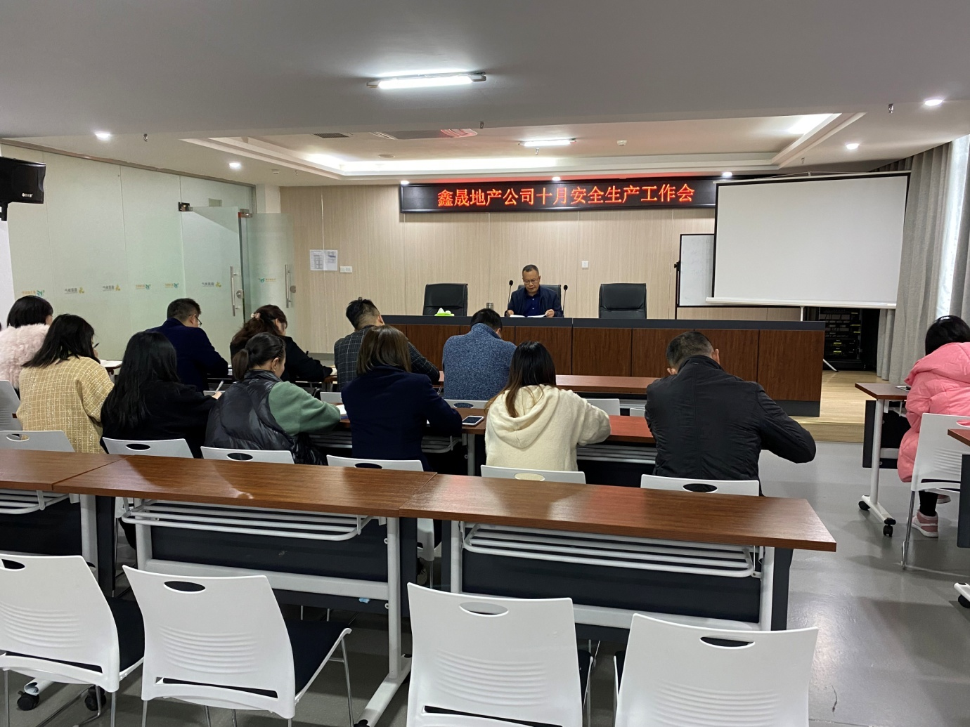 2021年11月2日,瀘州鑫晟房地產(chǎn)開發(fā)有限公司組織召開十月安全生產(chǎn)工作會(huì),會(huì)議由董事長(zhǎng)任東財(cái)主持,公司全體員工參加。