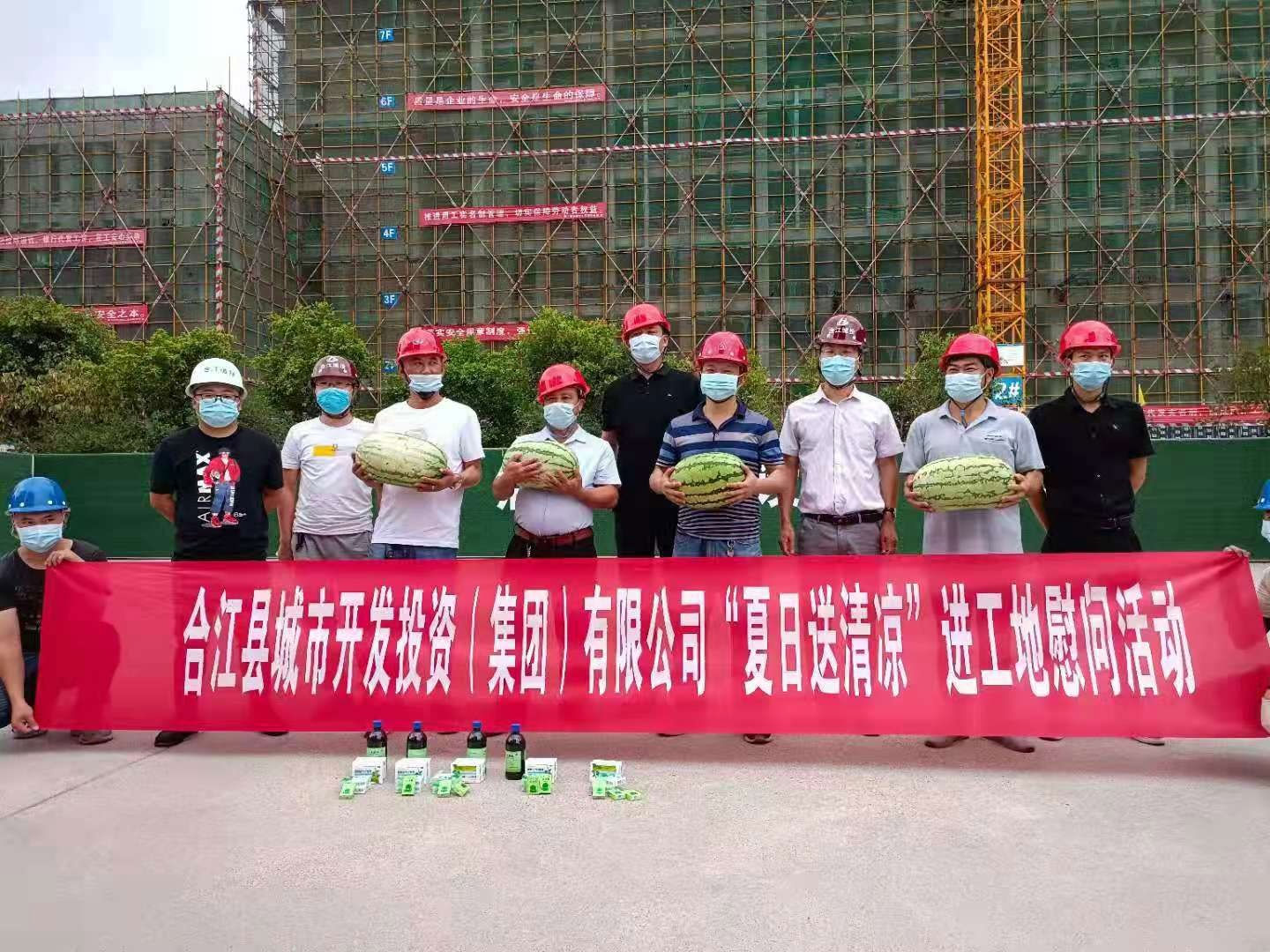 近日,為切實做好防暑降溫工作,慰問在一線奮戰(zhàn)的建設者們,合江縣城市開發(fā)投資(集團)有限公司組織開展了“夏日送清涼”進工地慰問活動。公司董事長兼總經理鞠志良同志、副總經理陳磊同志等分別帶隊前往合江縣城區(qū)及各鄉(xiāng)鎮(zhèn)建設項目工地現場,為奮戰(zhàn)在一線的工作人員送上了西瓜、藿香正氣口服液等防暑物品、藥品,同時,也進一步加強防疫知識宣傳,讓他們在盛夏的酷暑中感受到一份清涼與關懷!