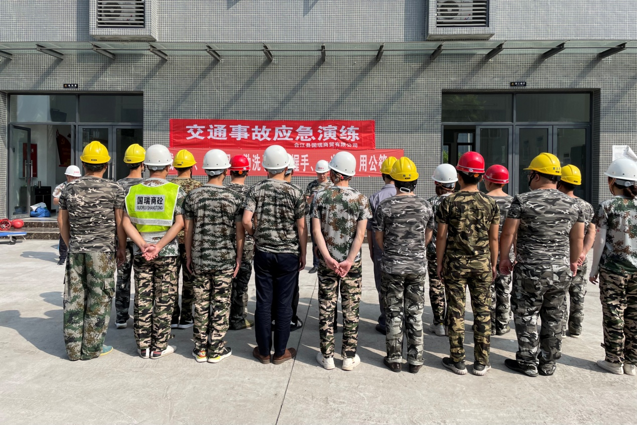 為進(jìn)一步提高職工的安全意識和自救自護(hù)逃生的能力,2021年6月11日上午,國瑞商砼站開展了交通事故應(yīng)急演練。