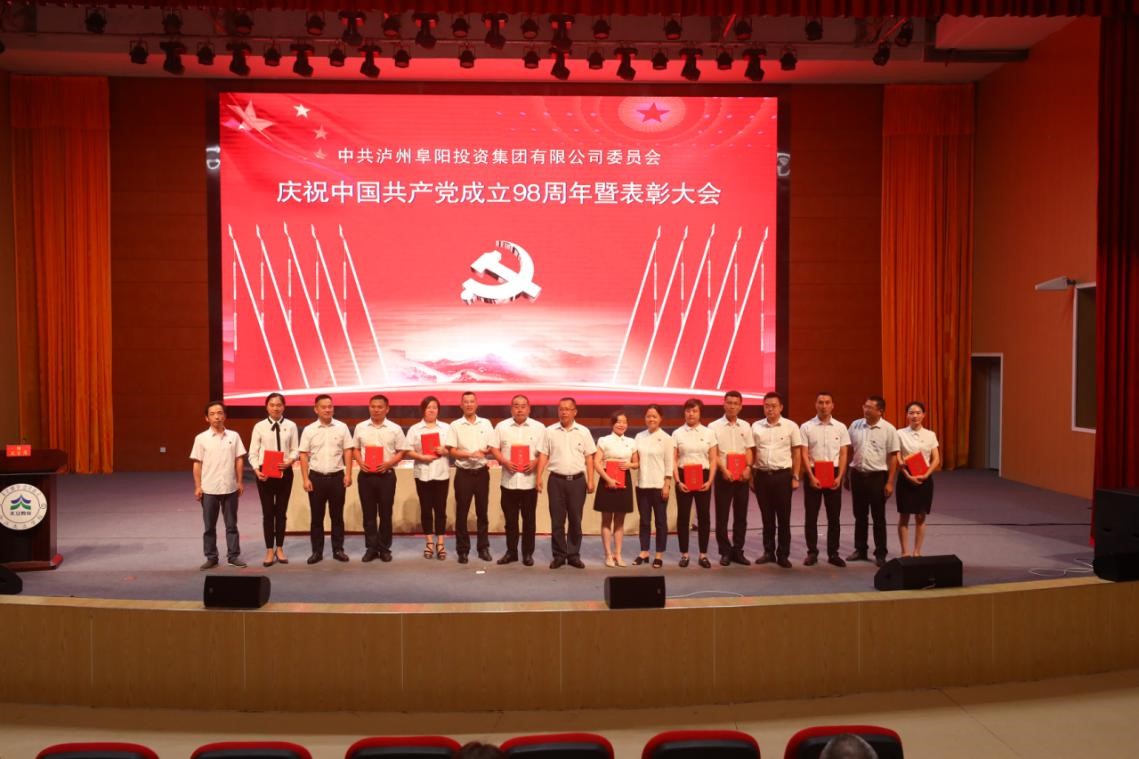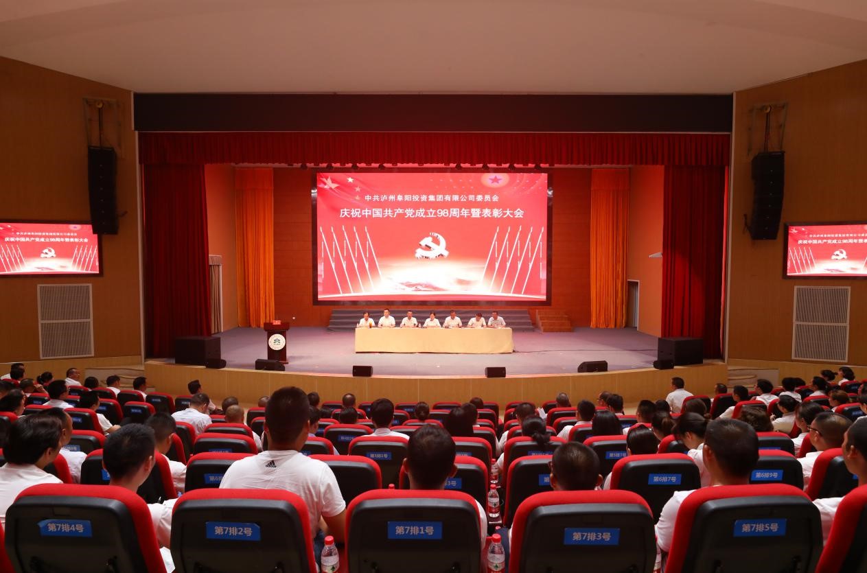 2019年7月1日下午,瀘州阜陽投資集團(tuán)有限公司黨委在合江天立學(xué)校驕子演藝廳召開“慶祝中國共產(chǎn)黨成立98周年表彰大會”,集團(tuán)黨委書記、董事長游啟君主持會議。集團(tuán)全體黨員、預(yù)備黨員、發(fā)展對象、積極分子及下屬公司全體員工300余人參加會議。