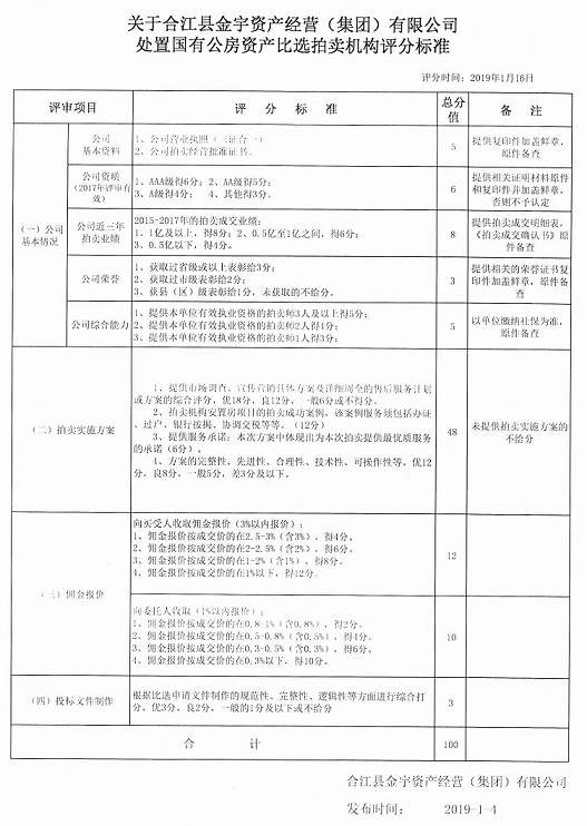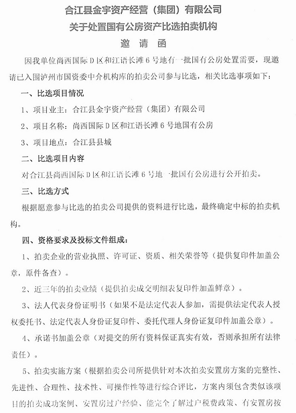 關(guān)于金宇公司處置國有公房資產(chǎn)比選拍賣機(jī)構(gòu)的公告