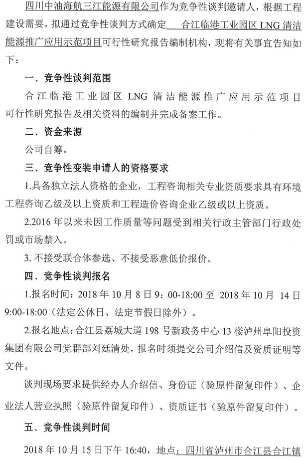合江臨港工業(yè)園區(qū)LNG清潔能源推廣應(yīng)用示范項目可行性研究報告編制單位競爭性談判公告.doc