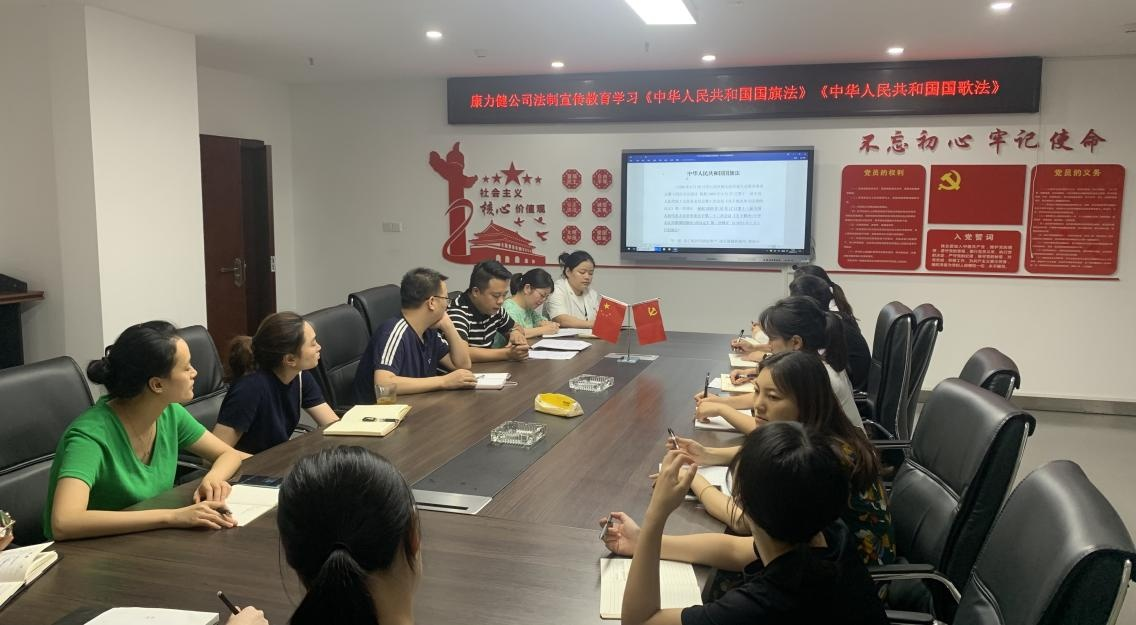 7 月 13 日 下 午 , 康 力 健 公 司 組 織 開 展 《 國 旗 法 》 《 國 歌 法 》 的宣傳教育和知識(shí)普及活動(dòng),由綜合部部長賀佳組織召開。