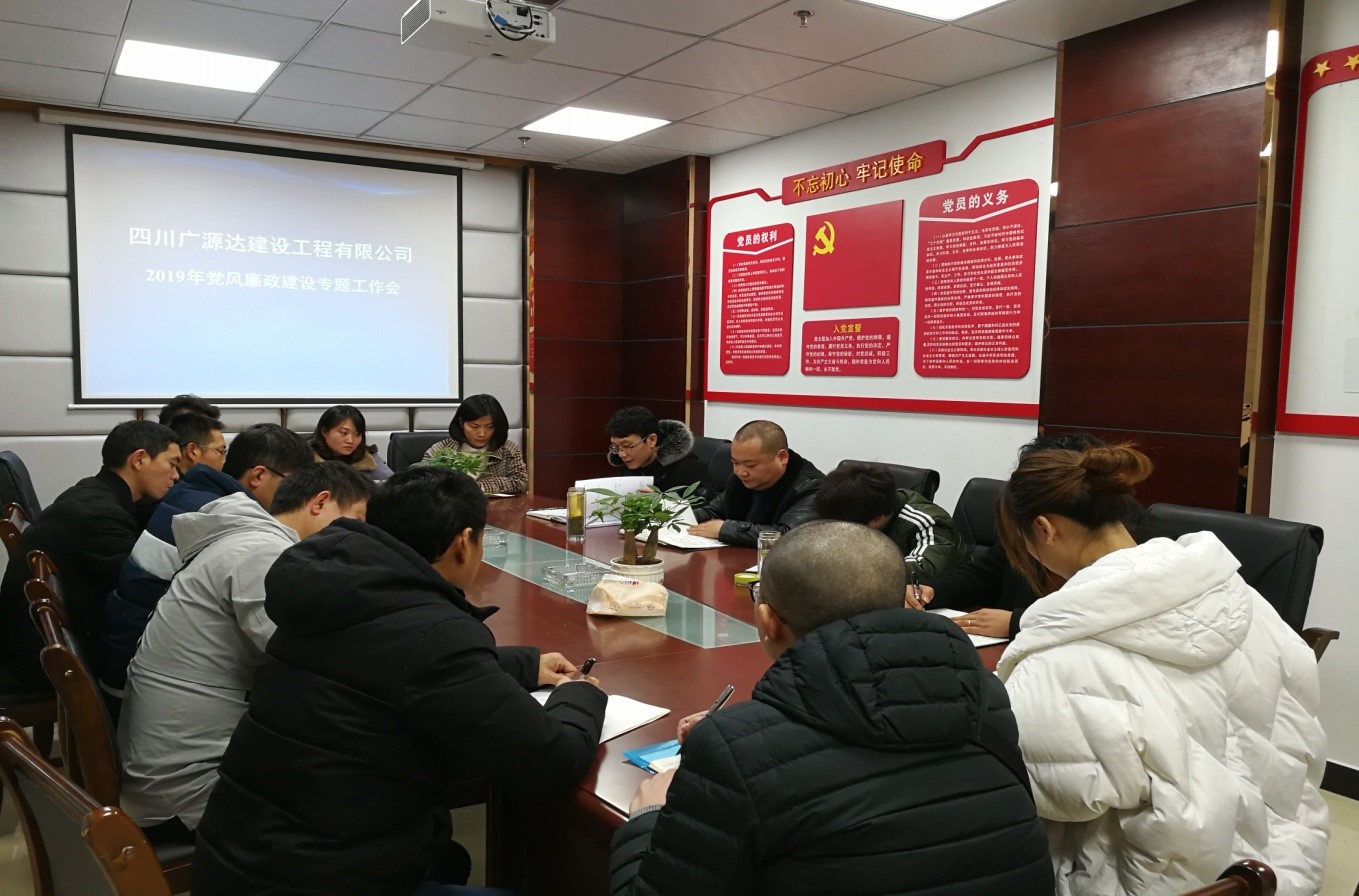1月11日下午,四川廣源達(dá)建設(shè)工程有限公司組織召開了2019年第一季度安全生產(chǎn)工作暨黨風(fēng)廉政建設(shè)工作會議。會上,董事長譙棣升領(lǐng)學(xué)了安全生產(chǎn)工作相關(guān)文件,全面總結(jié)了2018年安全生產(chǎn)工作目標(biāo)完成情況,并對2019年公司的安全生產(chǎn)工作提出了要求。同時,董事長譙棣升還著重強(qiáng)調(diào)了廉潔從業(yè)相關(guān)事宜,要求抓黨風(fēng)廉政建設(shè)要像抓企業(yè)安全生產(chǎn)一樣持之以恒,與企業(yè)經(jīng)營發(fā)展同頻共振;把廉潔從業(yè)作為企業(yè)發(fā)展的出發(fā)點(diǎn),堅(jiān)持以廉潔凝聚人心,以廉潔樹立形象。